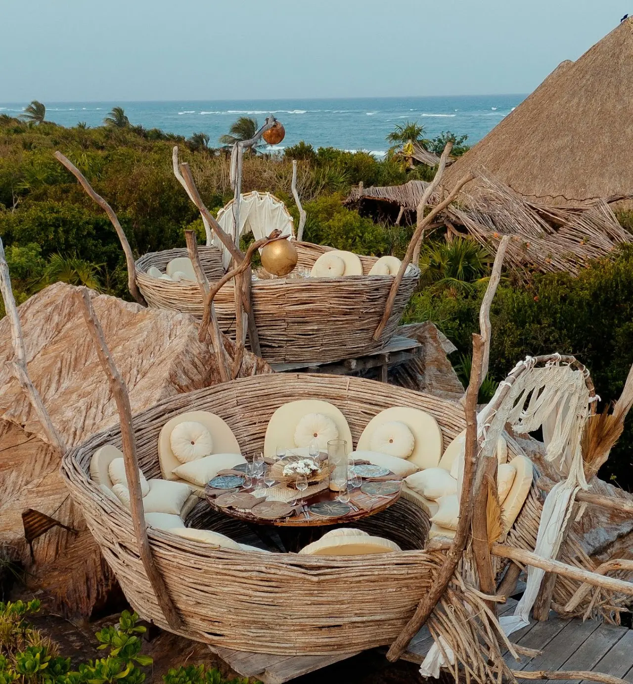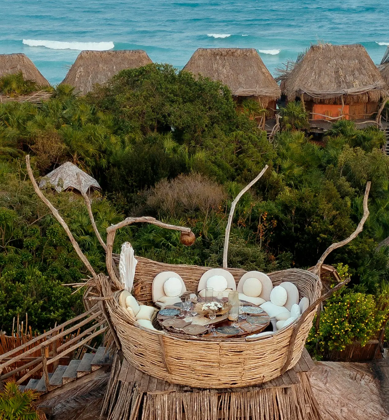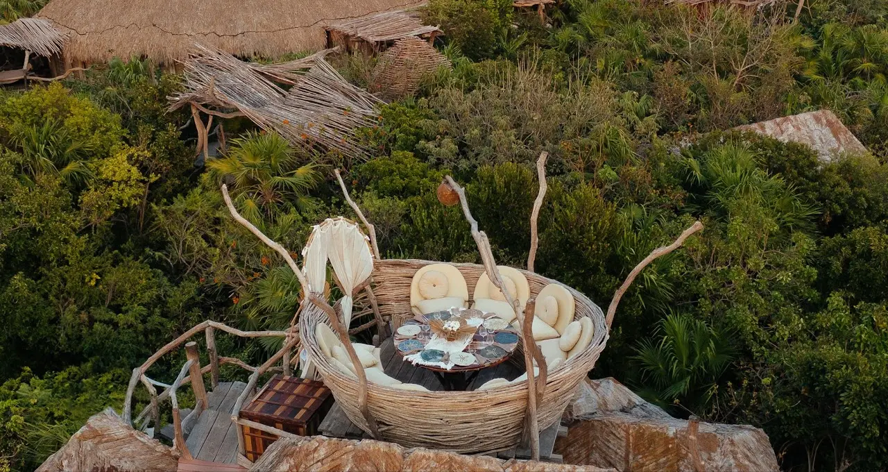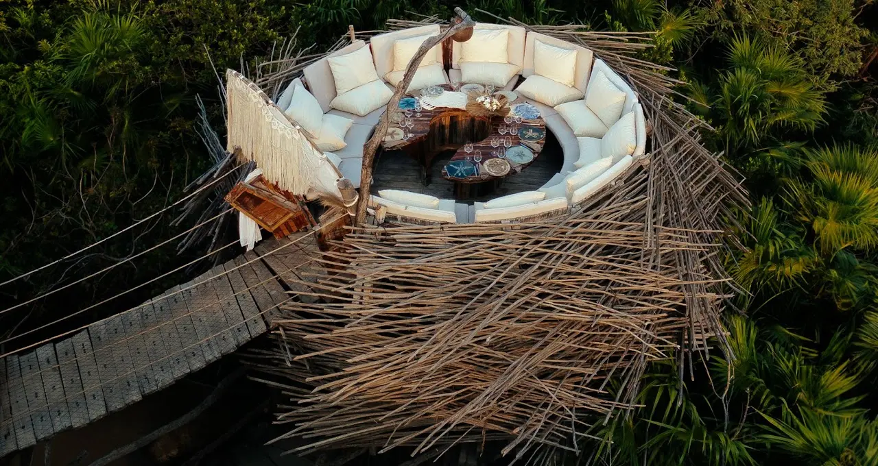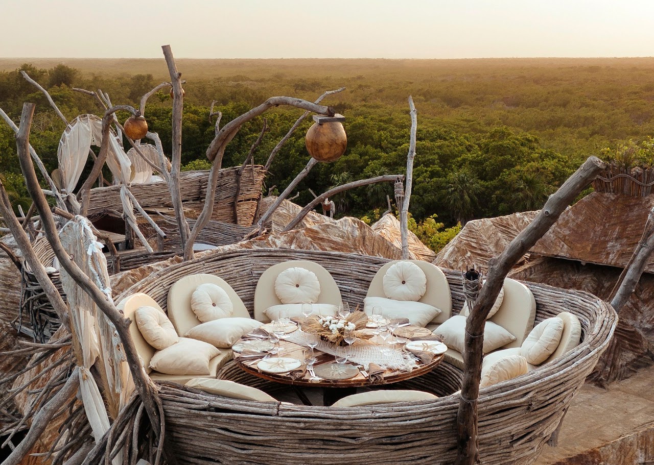 Las Nest Tables son mesas privadas con vistas panorámicas de 360 grados de la selva de Tulum, donde puedes disfrutar de su exclusividad desde las 6:00 p. m. (hora de apertura) hasta las 10:30 p. m.