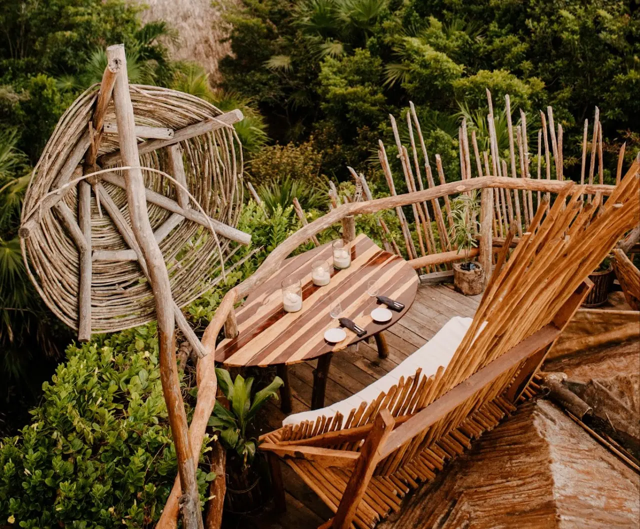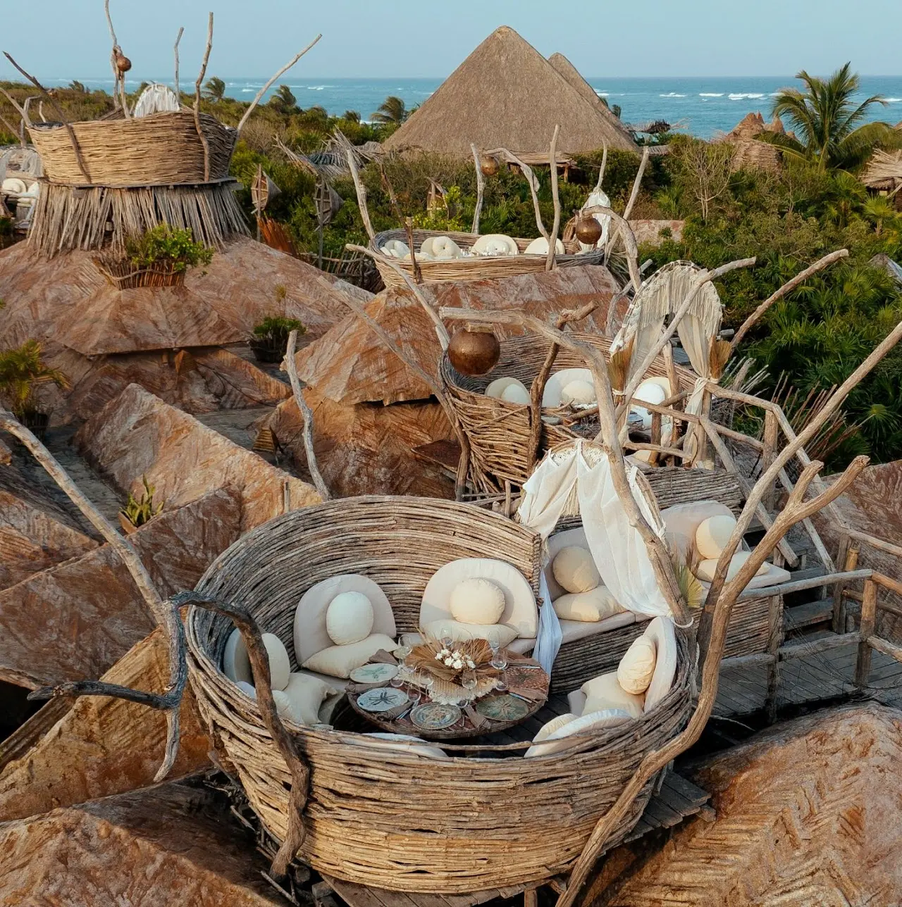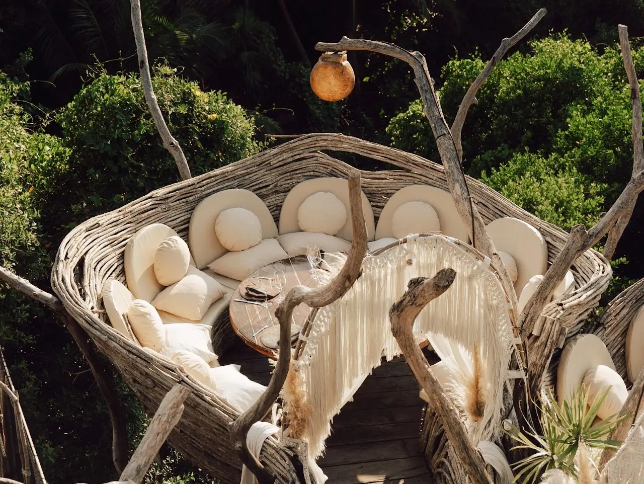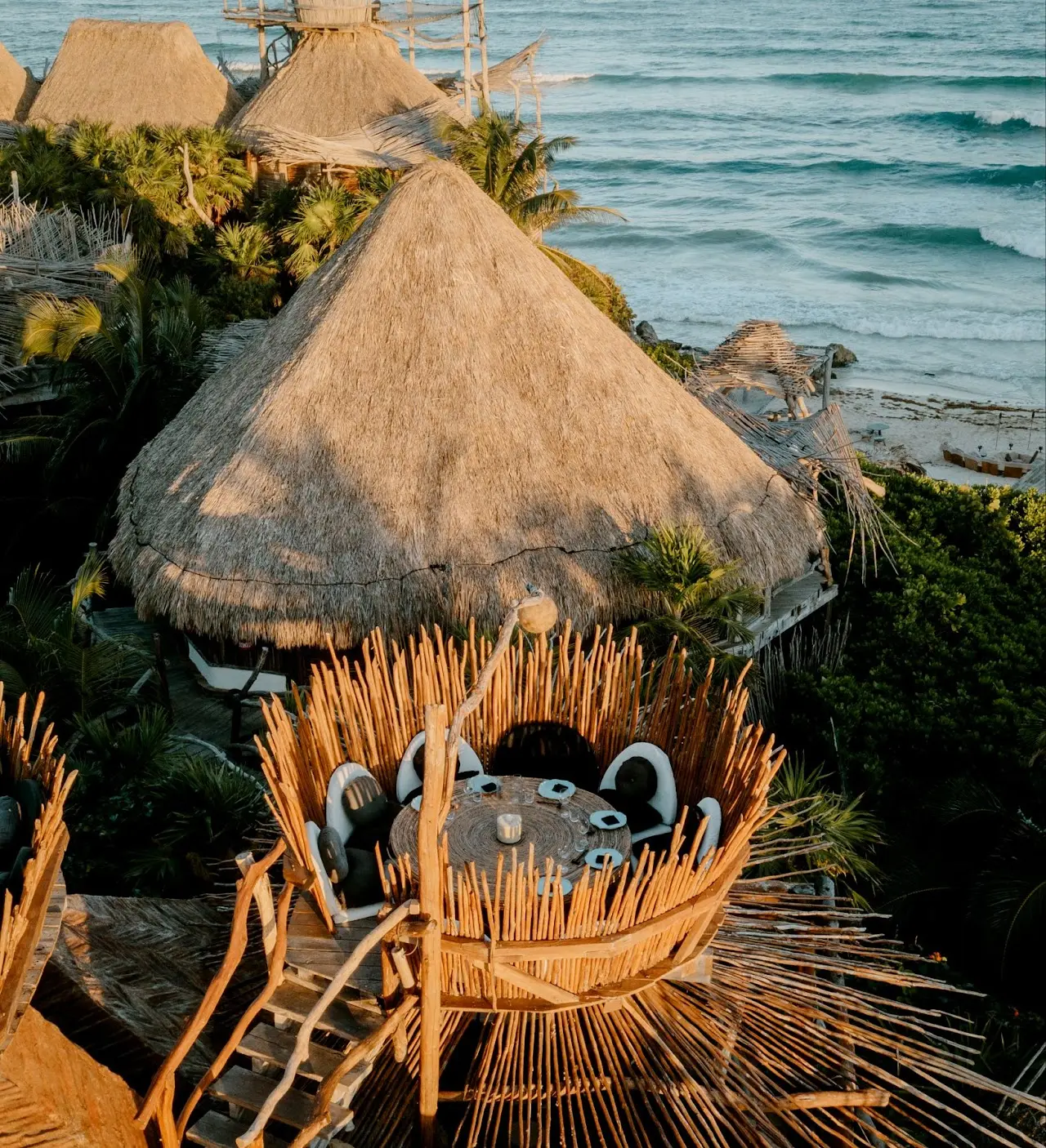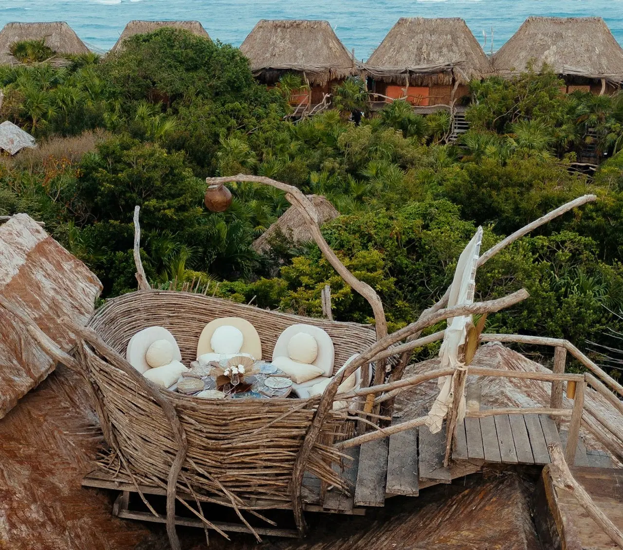 Las Nest Tables son mesas privadas con vistas panorámicas de 360 grados de la selva de Tulum, donde puedes disfrutar de su exclusividad desde las 6:00 p. m. (hora de apertura) hasta las 10:30 p. m.
